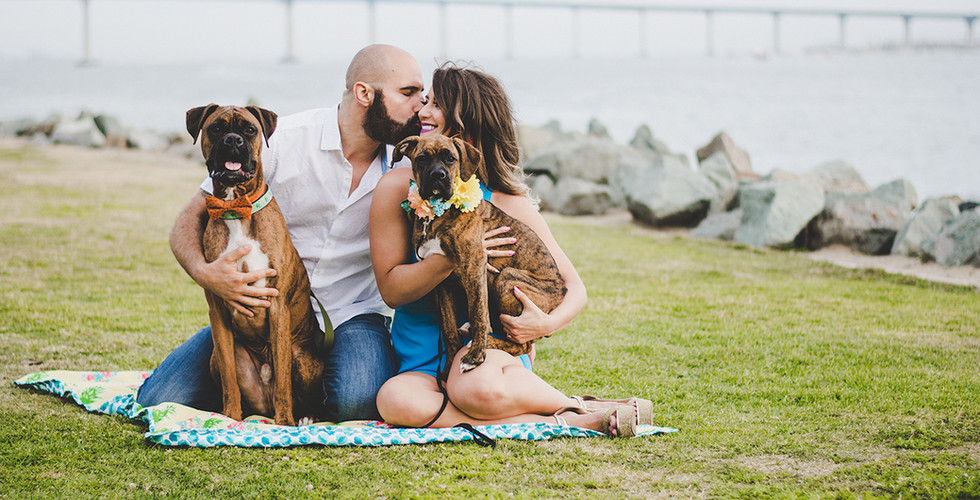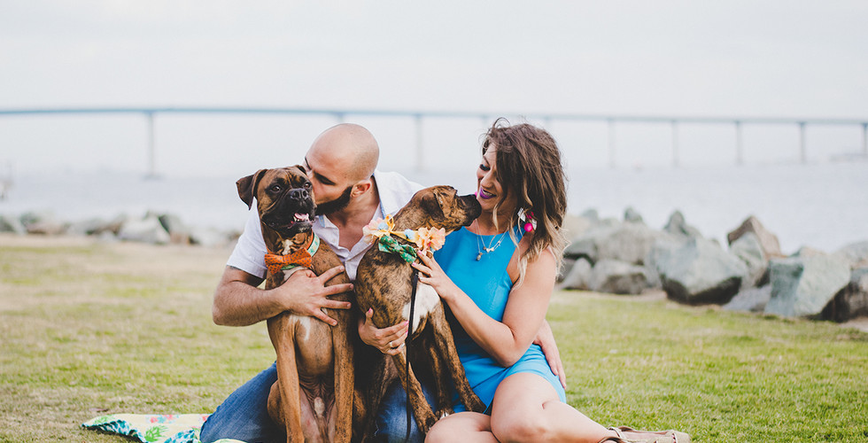 This pack is uniting! Lauren and Kyle along with their two pups, Hunter and Harper, are making it official! This engagement session was fun especially since Lauren and I are childhood friends from school. With the beautiful Coronado Bridge as a backdrop, this shoot is all about puppies and pineapples...and of course the love between these two!